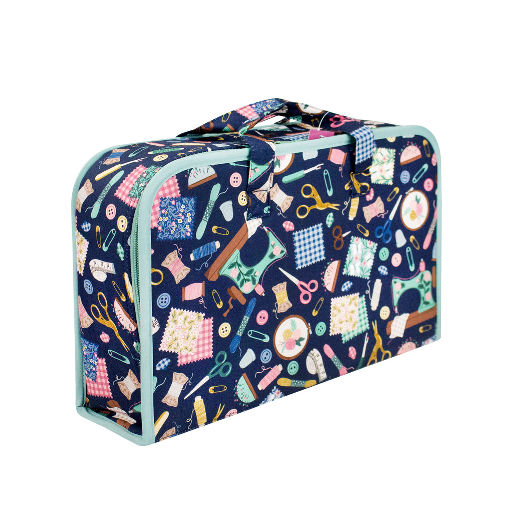 Stylish and handy carry case with lots of compartments to hold and organise everything you need. Internal elastic compression straps holding bigger items in place. Great for knitting, craft or sewing accessories. Zipper closure provides safe, secure storage and easy access.