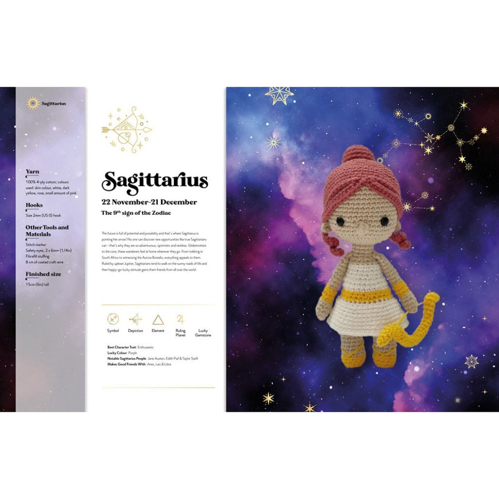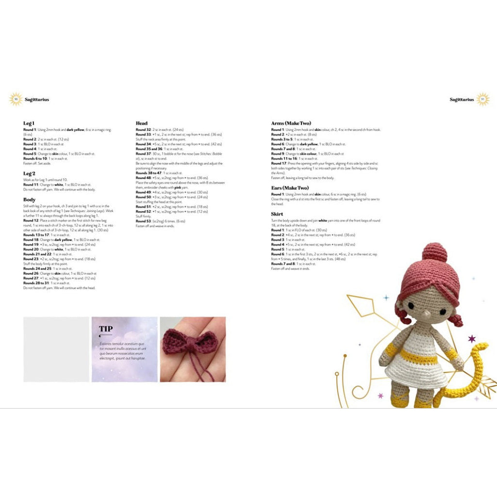Each of the zodiac doll crochet patterns draw on the symbols of the star sign that they represent so they are immediately recognisable whether it's Aquarius the Water Carrier, Cancer the Crab or Sagittarius the centaur with his bow and arrow. The designs also reference the characteristics of each of the star signs and Carla explores the traits of each of the zodiac signs and which signs they are compatible with, just for fun.