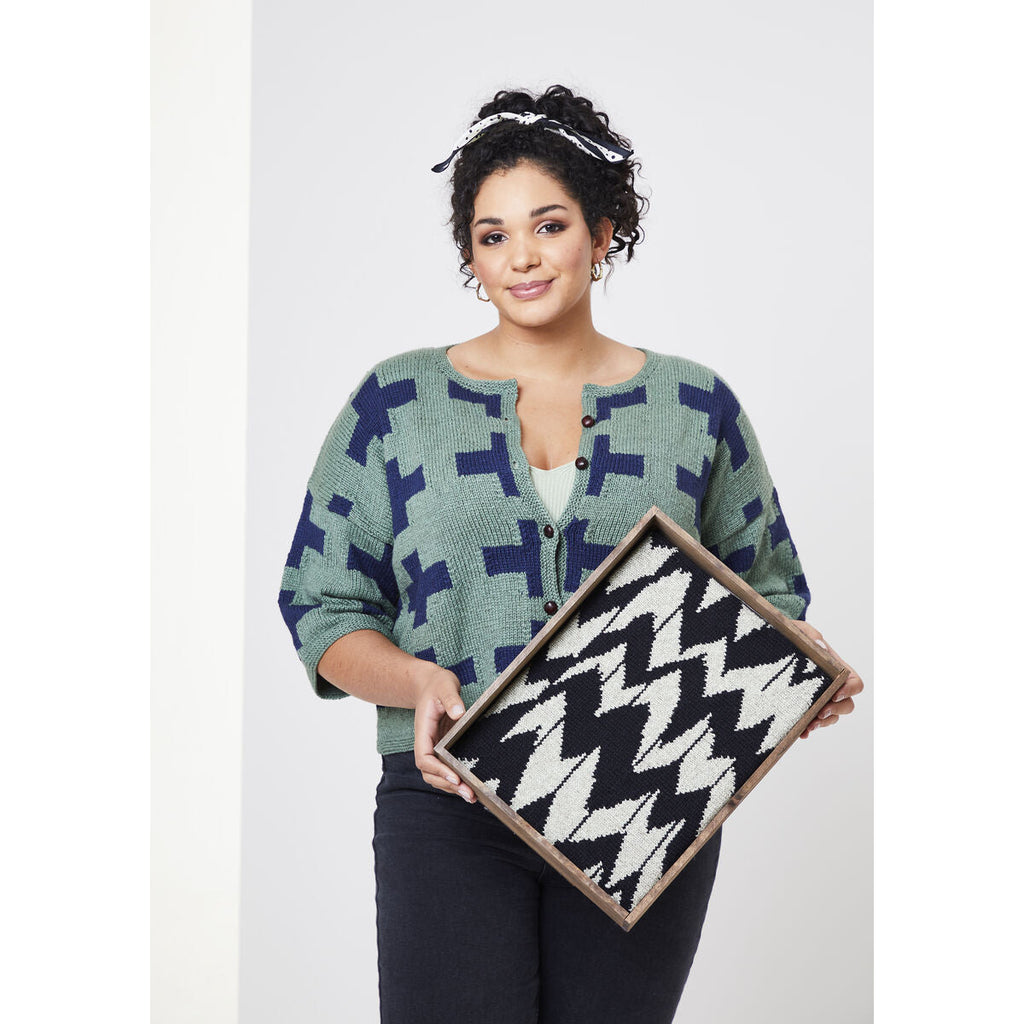 In this eye-catching collection, Brandon Mably showcases his love of pattern and geometry using lively shades of Softyak DK. Brandon has designed eight bold colourwork patterns for you to apply to either a sweater or a jacket. Once you have chosen your garment - sweater or jacket – you will then select which pattern you want to work it in. One garment, eight options - which one will you choose?