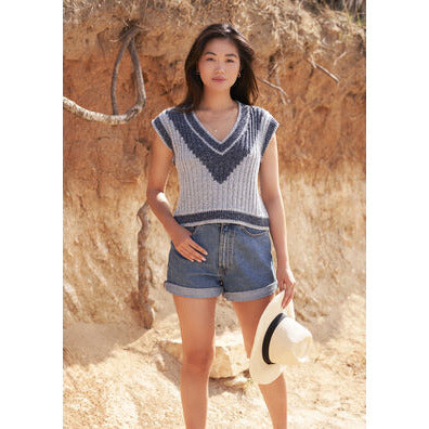 Head to the coast with Chloe Thurlow’s must-have collection of cool summer essentials using Denim Revive, the sustainable choice. These key summer pieces explore the cool blue palette of this recycled denim yarn with its sustainable credentials.