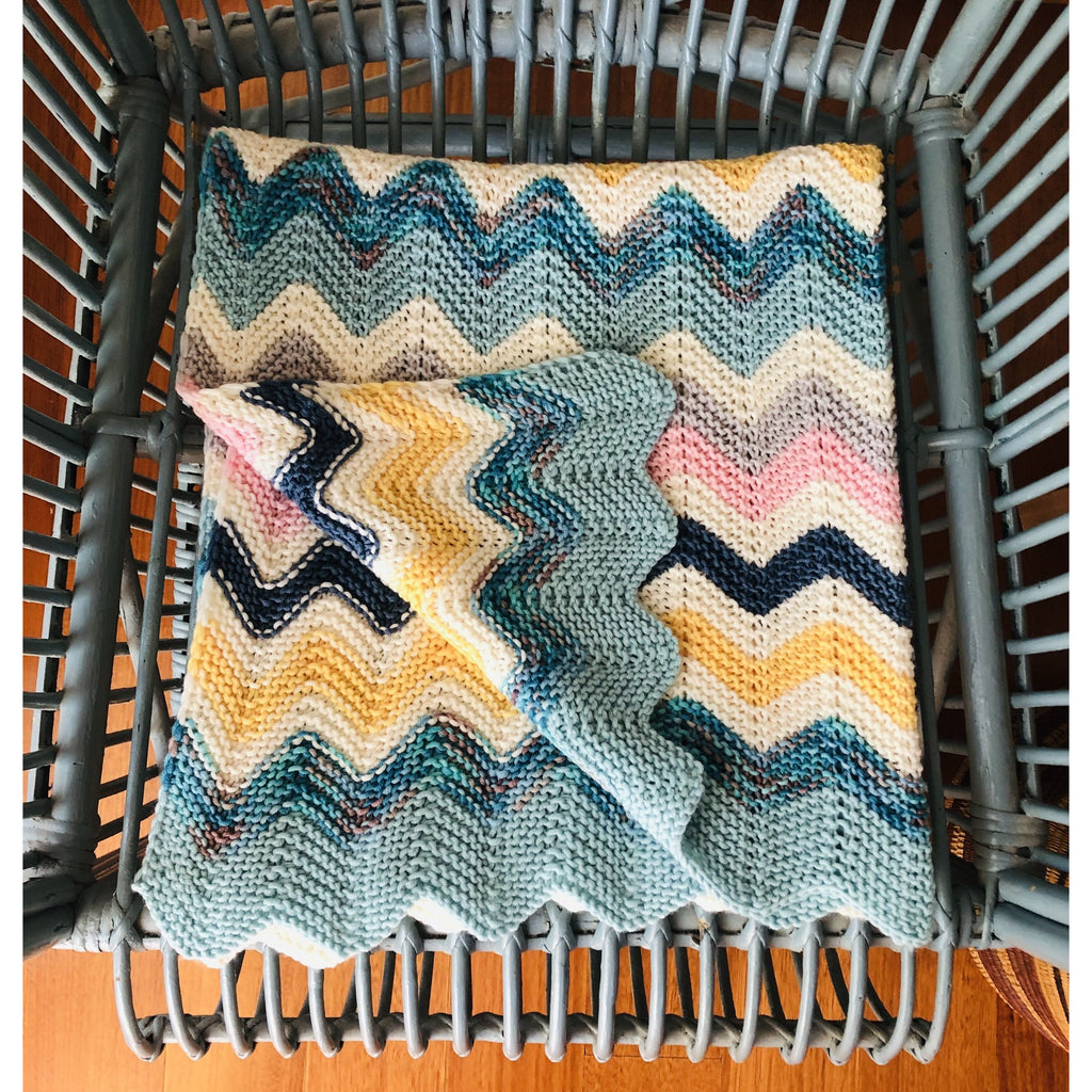 Inspired by the Art Deco colours and beach vibe, the Miami Baby Blanket is perfect for any new baby. The pattern is available as both Knit or Crochet and the simple stitch pattern used in each makes for an almost meditative project. This blanket has been designed as a baby blanket but can be easily adapted to create a blanket of any size.