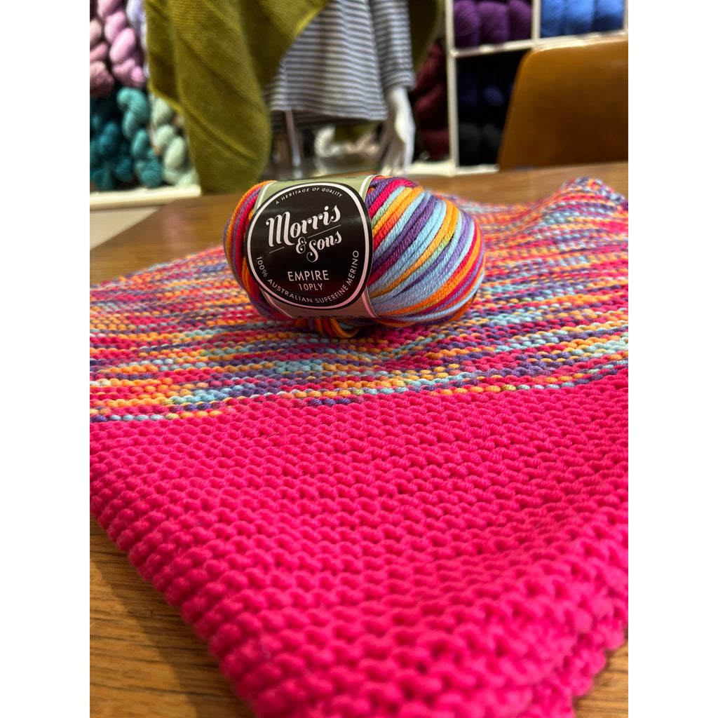 Yarn Included: Morris & Sons Empire 10 ply yarn, 90m per 50g ball, 100% Australian superfine Merino wool.