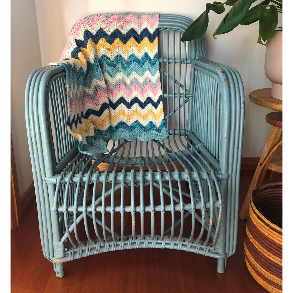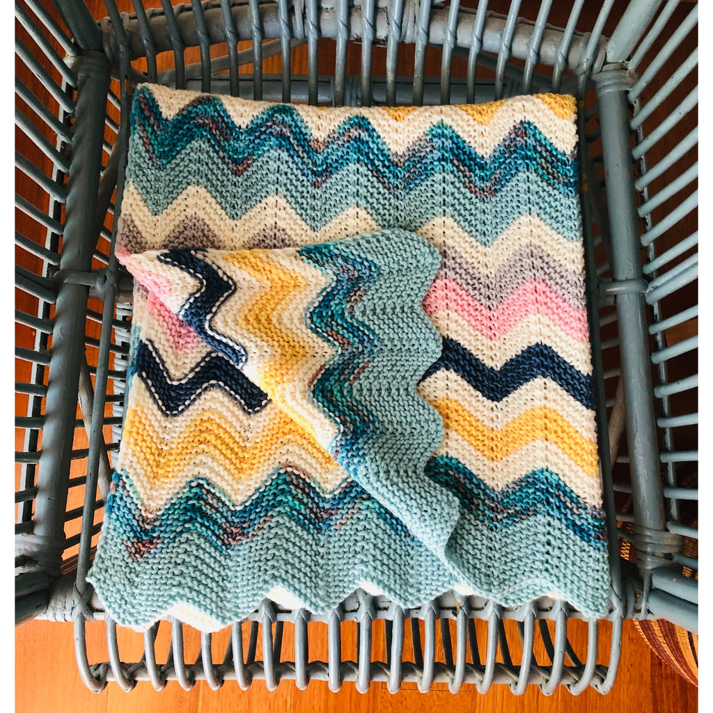 Inspired by the Art Deco colours and beach vibe, the Miami Baby Blanket is perfect for any new baby. The kit is available for Knit or Crochet (you will receive the pattern for both versions but the crochet kit contains more yarn as required). The simple stitch pattern used makes for an almost meditative project. This blanket has been designed as a baby blanket but can be easily adapted to create a blanket of any size.