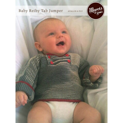 This jumper requires: 3 (3; 4; 5) balls Morris Avalon 8ply in main colour and 1 ball of Morris Avalon 8 ply in edging colour, 1x 4.00mm 80cm circular needle, 3.75mm crochet hook, 1 spare knitting needle for three needle cast off (4mm or larger), 4 buttons, 3 stitch holders and a wool needle.