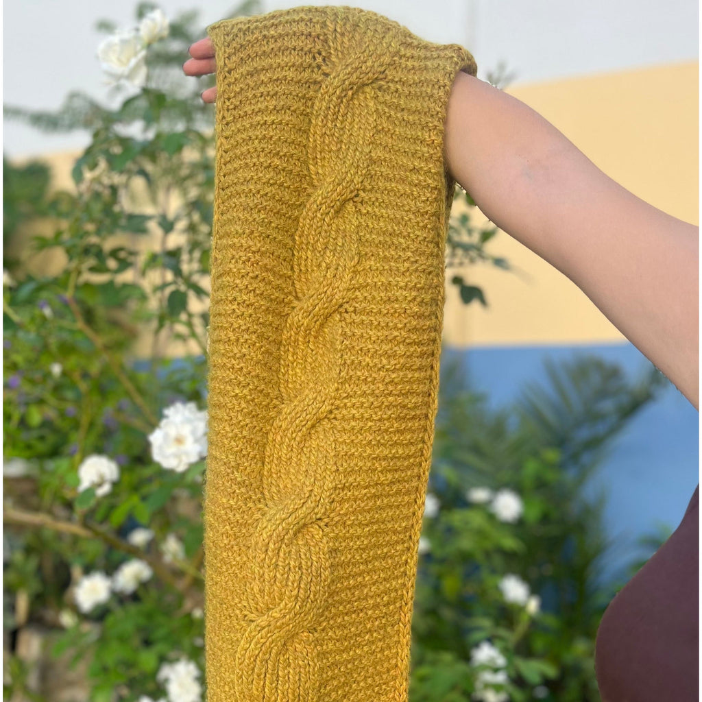 This Honey Cable Cowl is not only gorgeous and soft but it's reversible! Both sides look lovely and you'll want to wear this all winter long. It is made in our Morris 14ply Maya 100% alpaca and needs 7 balls. This pattern also needs 7.00mm needles, a cable needle and a wool needle for sewing up.