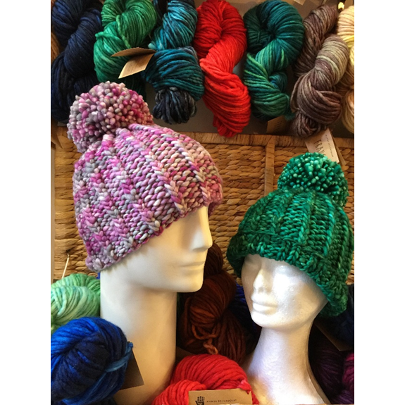The Nut Bucket Hat is the perfect quick and cosy weekend project. This warm and super soft beanie works up quickly in just one skein of 100% merino Manos del Uruguay Franca. The hat is knit flat and sewn together at the end, making it a great project for beginners and one you'll want to knit for each of your friends! It is finished with a large fluffy pom pom, made perfectly round using the Clover Large Pom Pom Maker, available here.