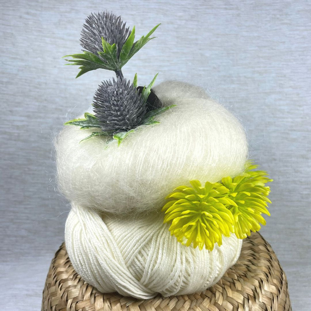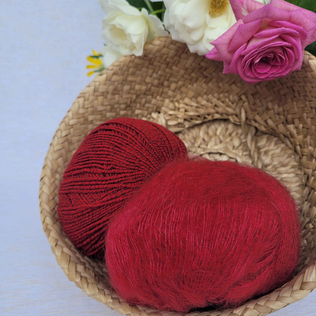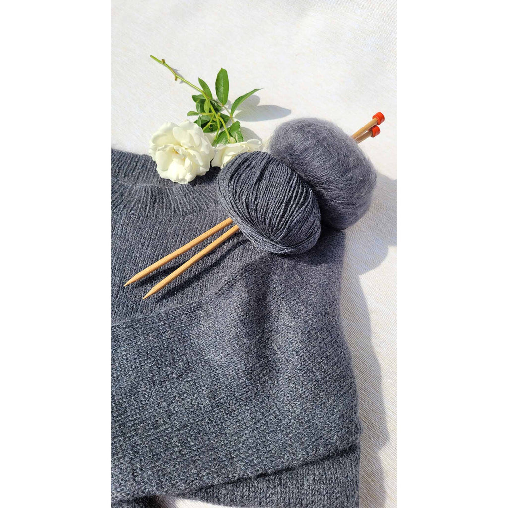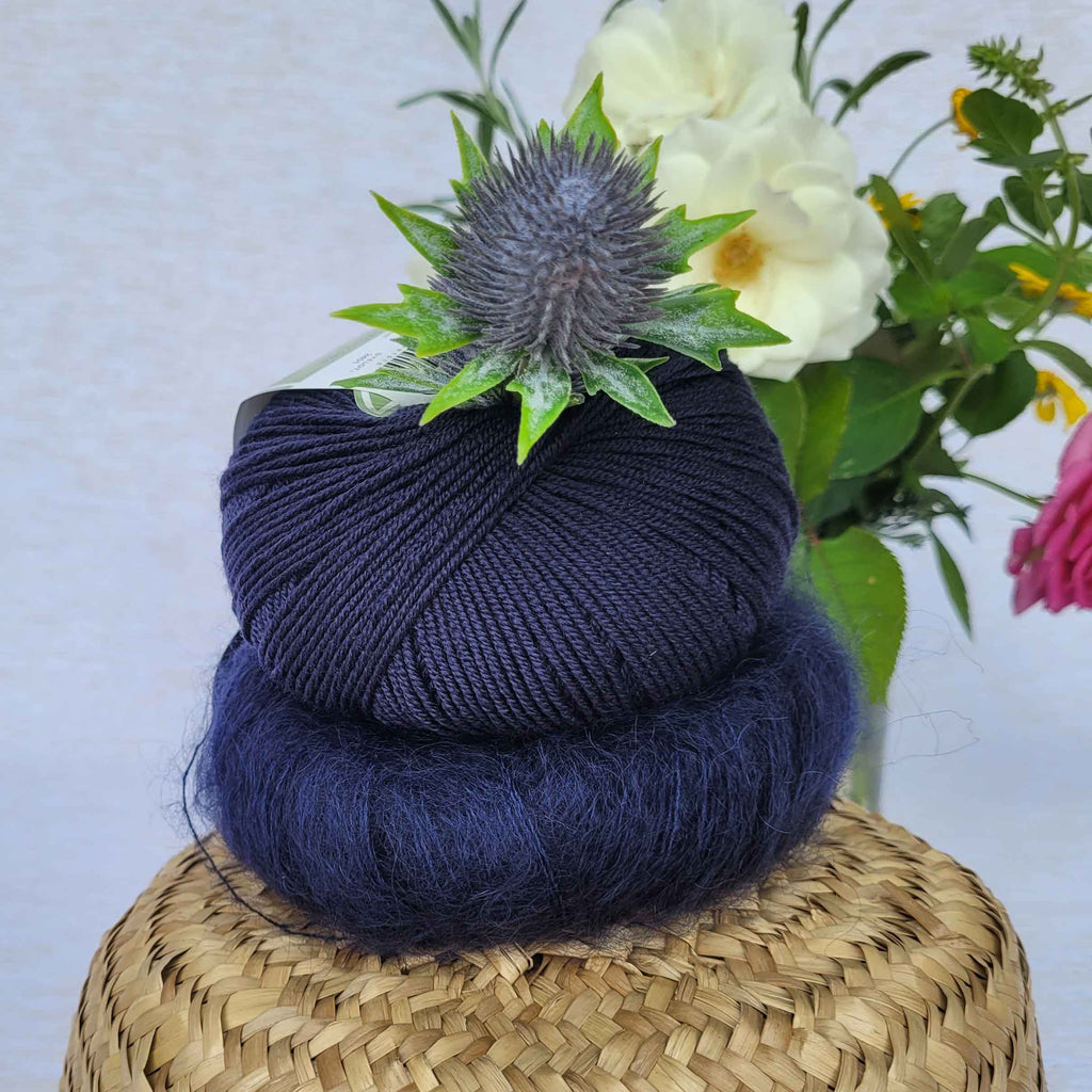 We've picked our favourite colours in Empire 100% Merino Wool and Rowan Kidsilk Haze Mohair for this stunning sweater. Light, soft and fuzzy.