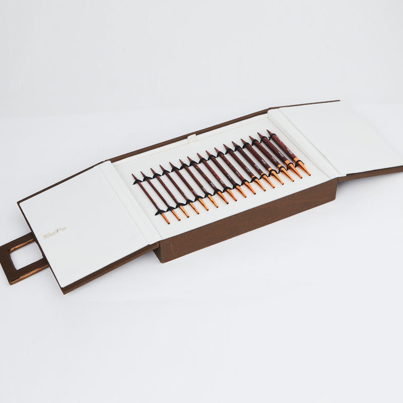 A boxed set of 8 interchangeable needles in a beautifully handcrafted Leatherette box. Comes with an elegant Symfonie shawl pin that you cannot take your eyes off from.