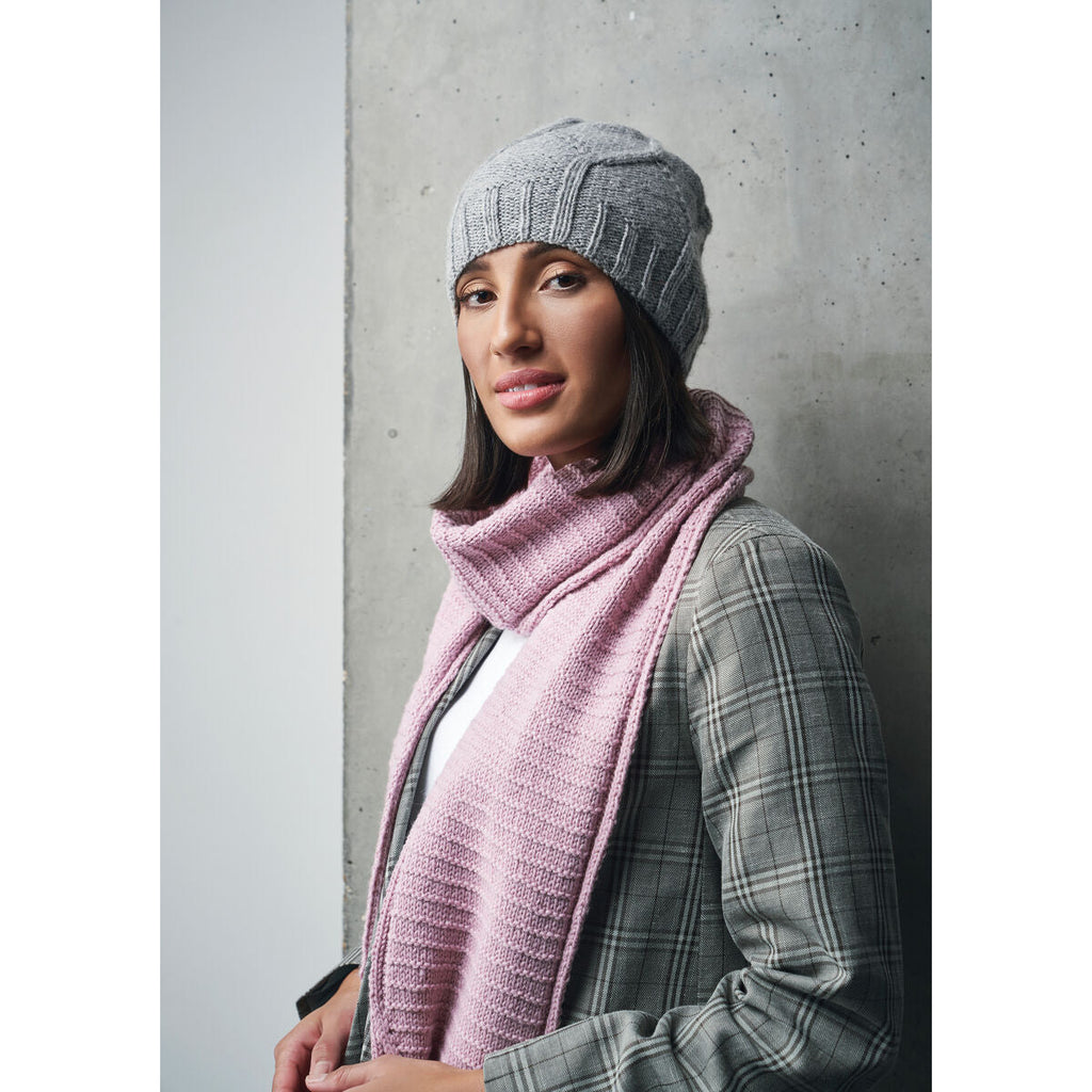 From Georgia Farrell's My London collection comes this cool geometric-inspired hat designed with moving linear details and contrasting ribbing in Alpaca Soft.