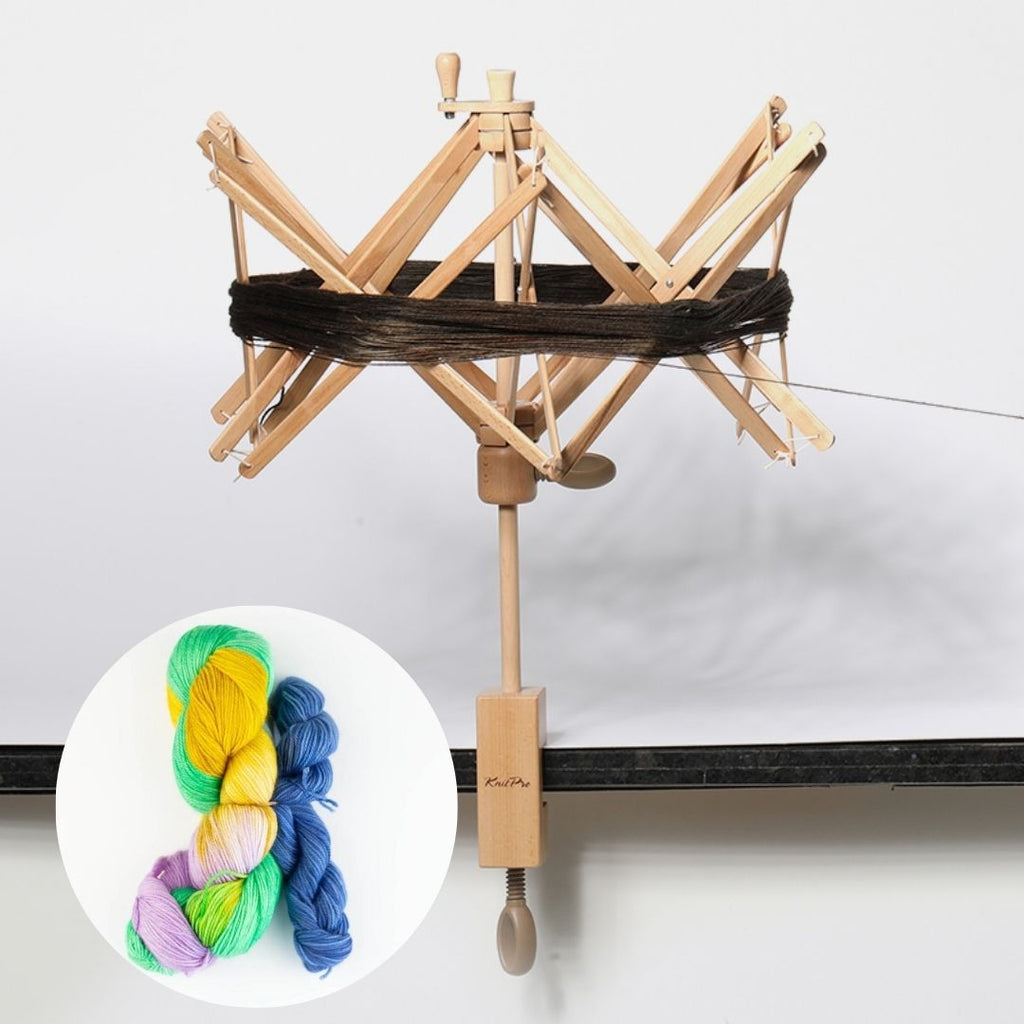 Knit Pro Natural Timber Yarn Swift + Manos Alegria Superpool