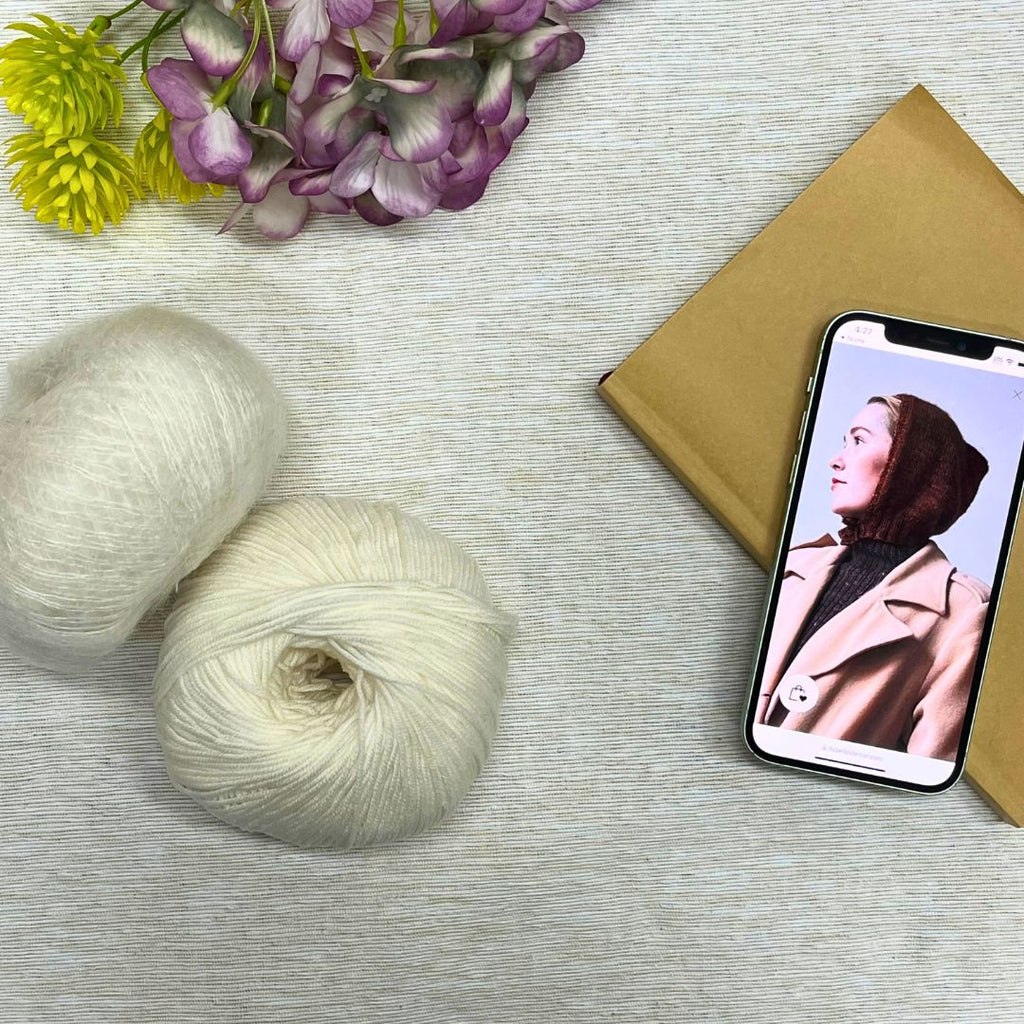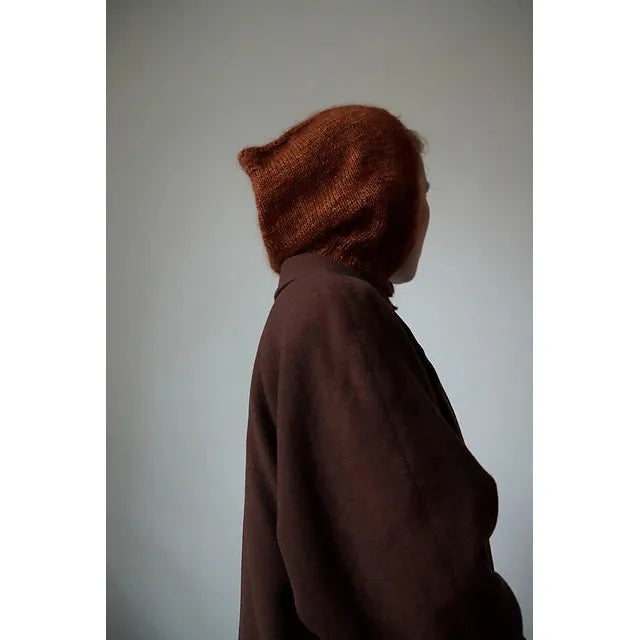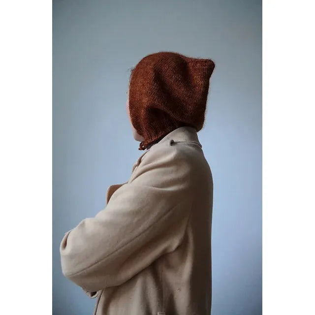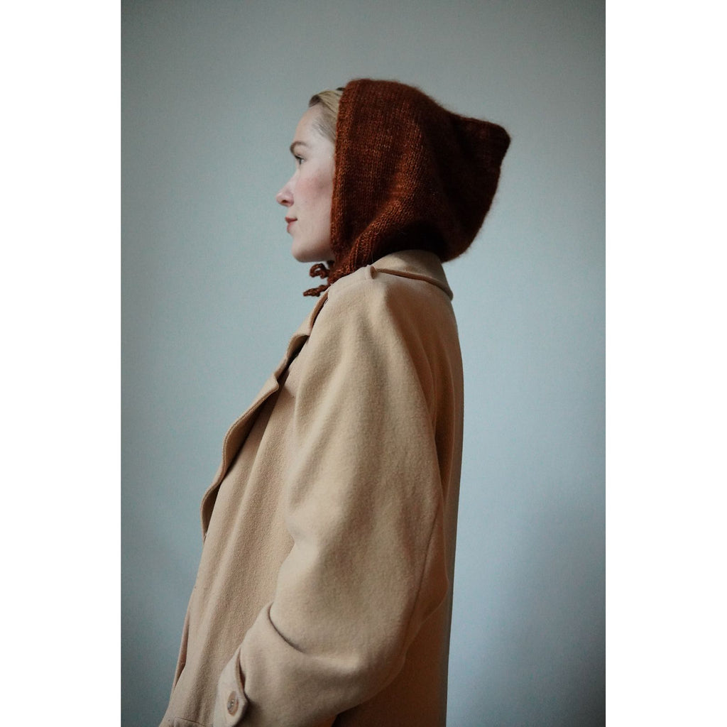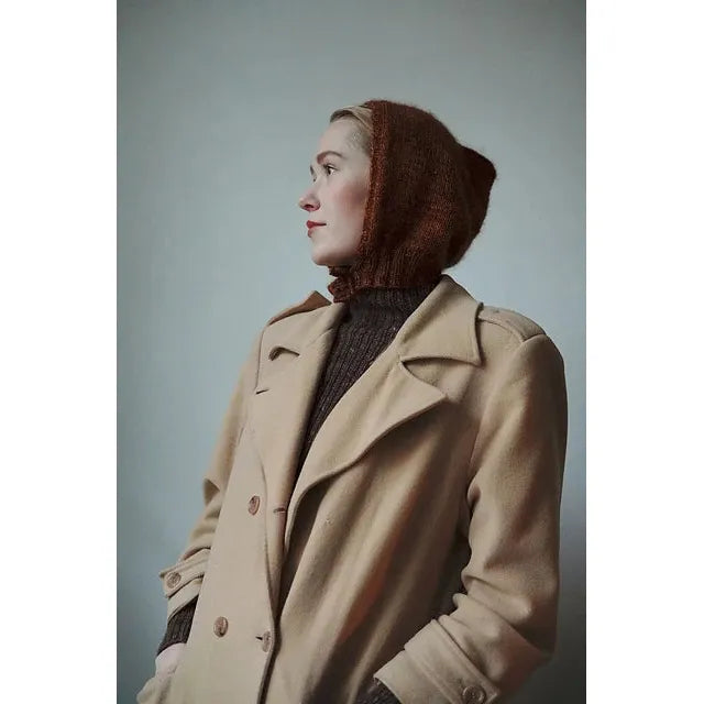 Introducing the Fuzzy Pixie Hood pattern, a charming and luxurious 1940s-inspired hood designed by Helene Arnesen from Faber Knitwear.