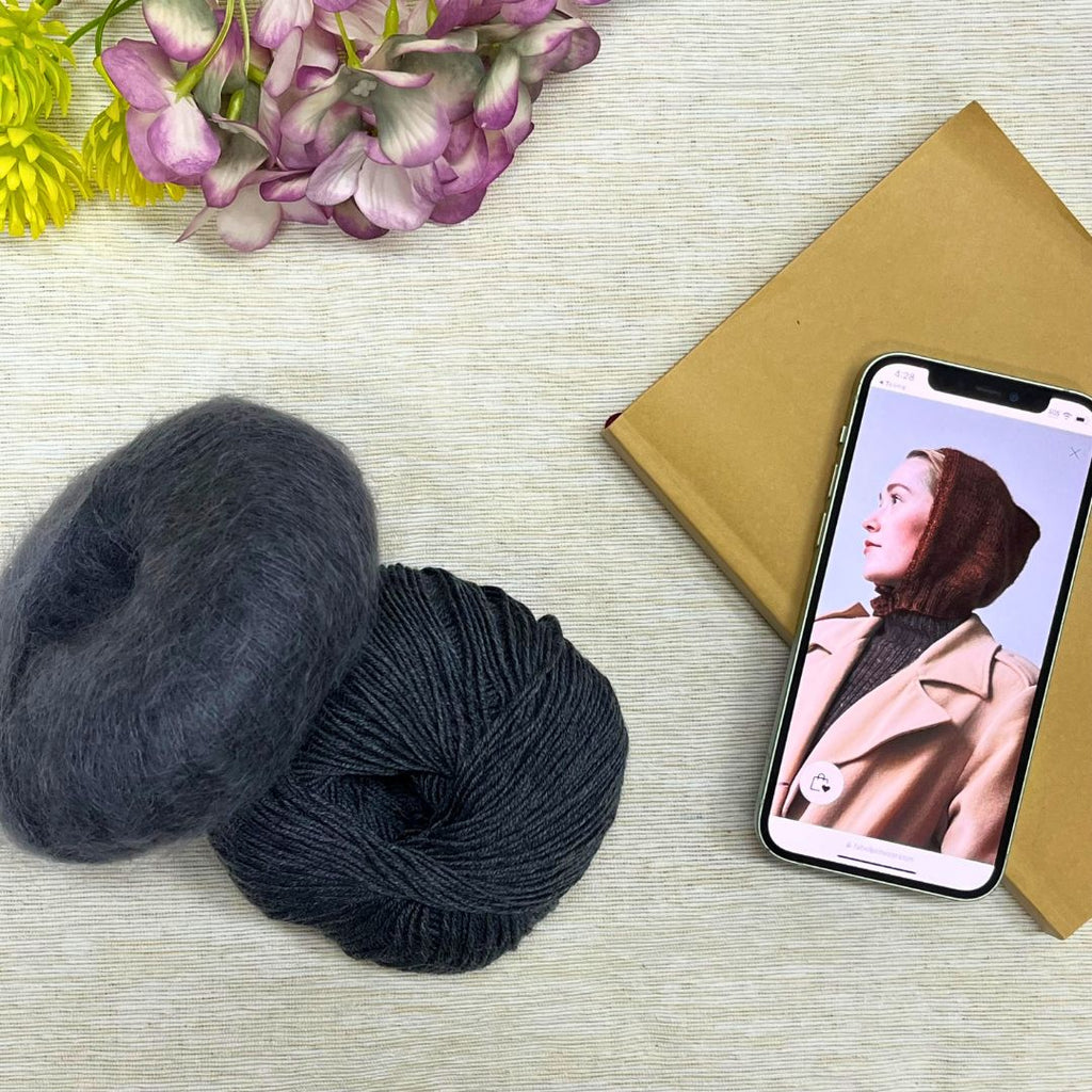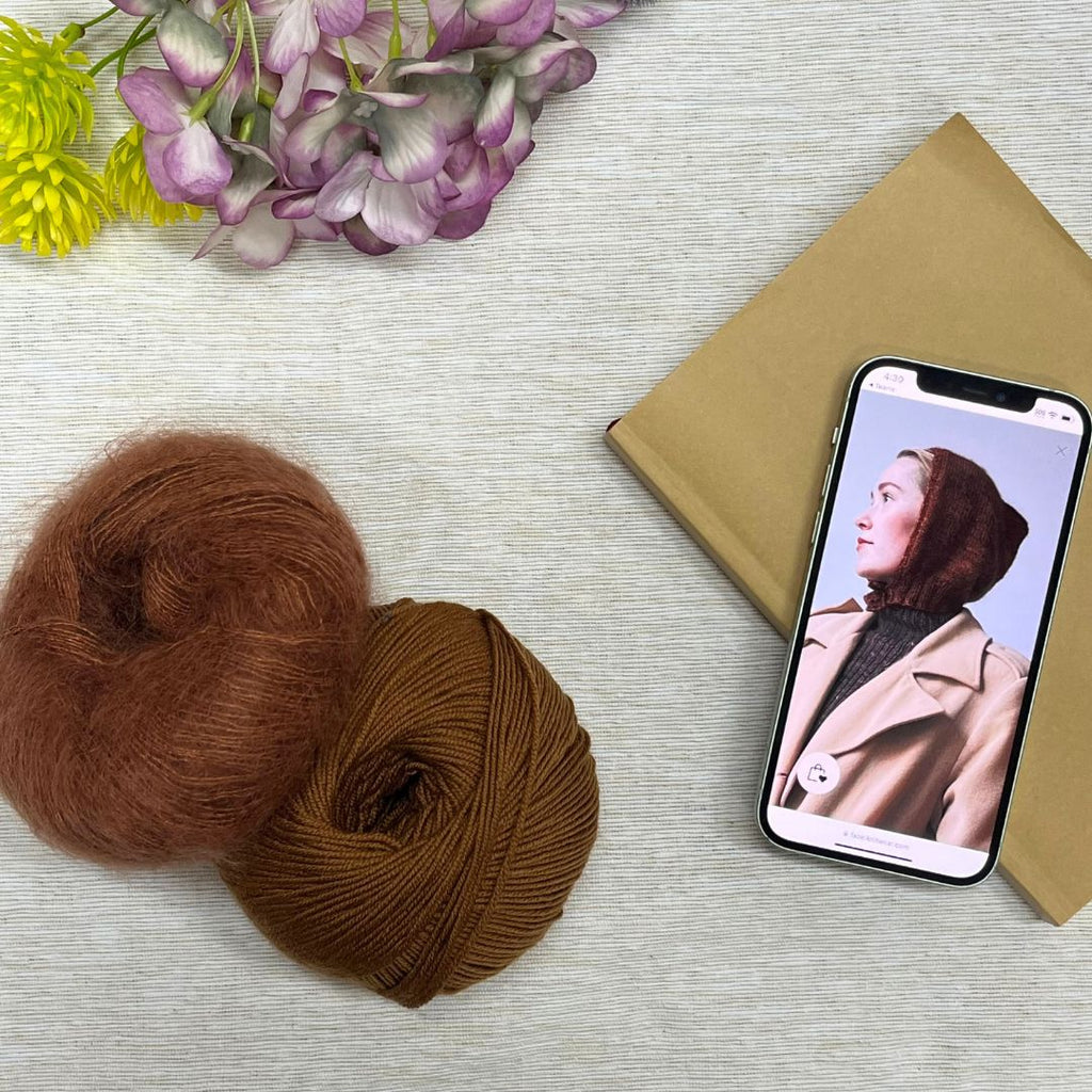 For this project, we recommend using one strand of our Empire 4ply yarn in Colour 410 Glazed Ginger with another strand of Rowan Kidsilk Haze in Colour 733 Soil. Empire yarn, crafted from 100% superwash merino wool, ensures a smooth and soft feel, while Kidsilk Haze combines super kid mohair and silk for a soft halo and vibrant shine. These yarns add a touch of luxury and warmth to your Fuzzy Pixie Hood, making it a delightful accessory for the colder seasons.
