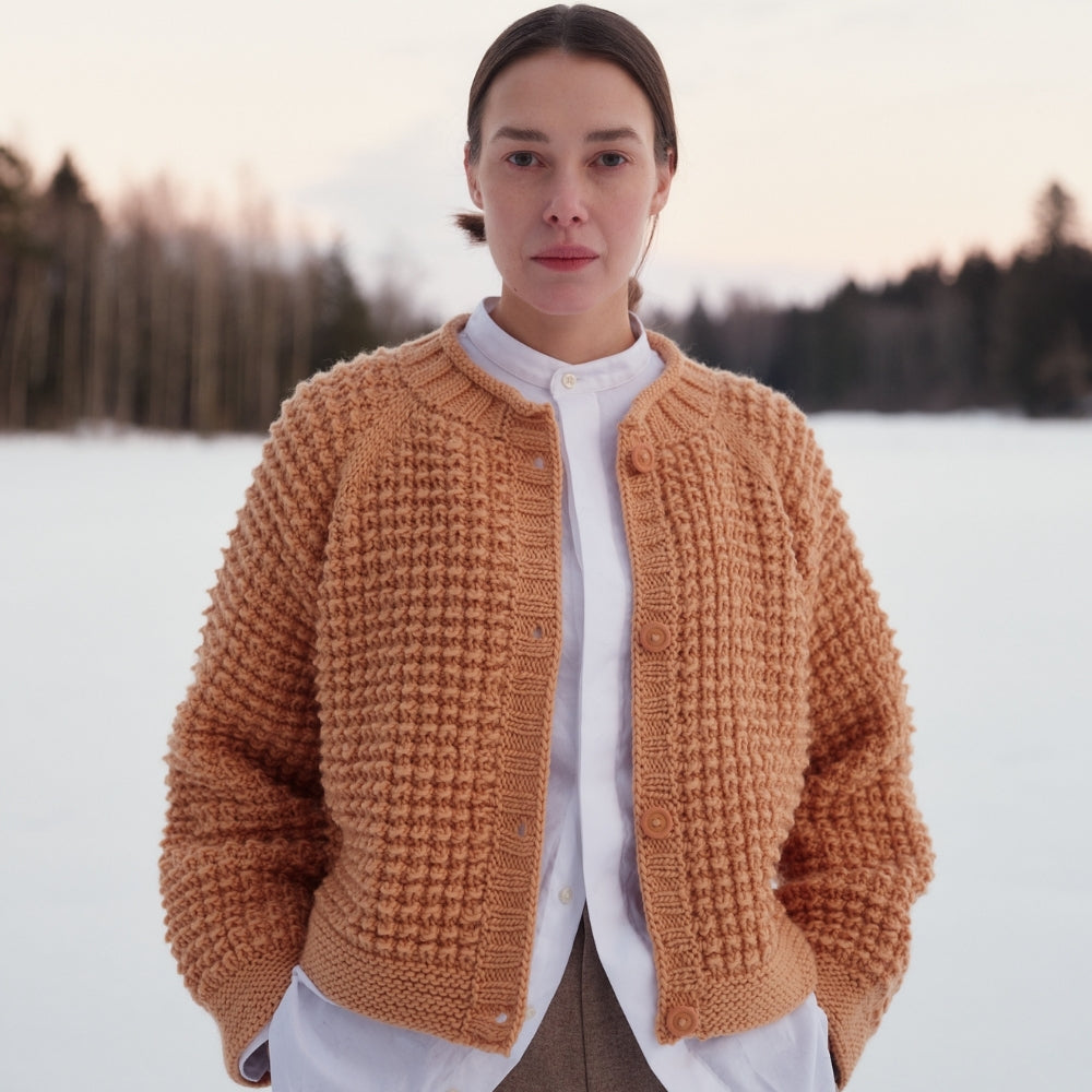 Our winter issue, Laine 23, Borealis, takes you to the snowy countryside on one of the coldest days of the year. The warm, cosy and beautiful knits include many winter wardrobe staples, such as an all-over colourwork sweater, a cabled hat and a chunky, textured cardigan. The serene stillness captured in this edition’s photography soothes your mind and senses.