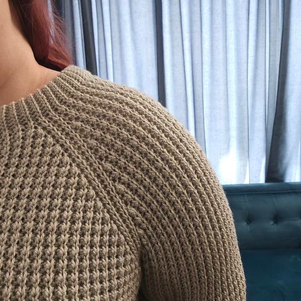 The Duna Sweater is an innovative knit-look project that is crocheted sideways in one single panel. The raglan effect is created with short rows and the sleeves and front/back panel are joined as you go. This means that the end result is almost a fully closed sweater, which requires minimal sewing to complete. Other features include tapered sleeves, folded neckband and a lower neckline at the front.
