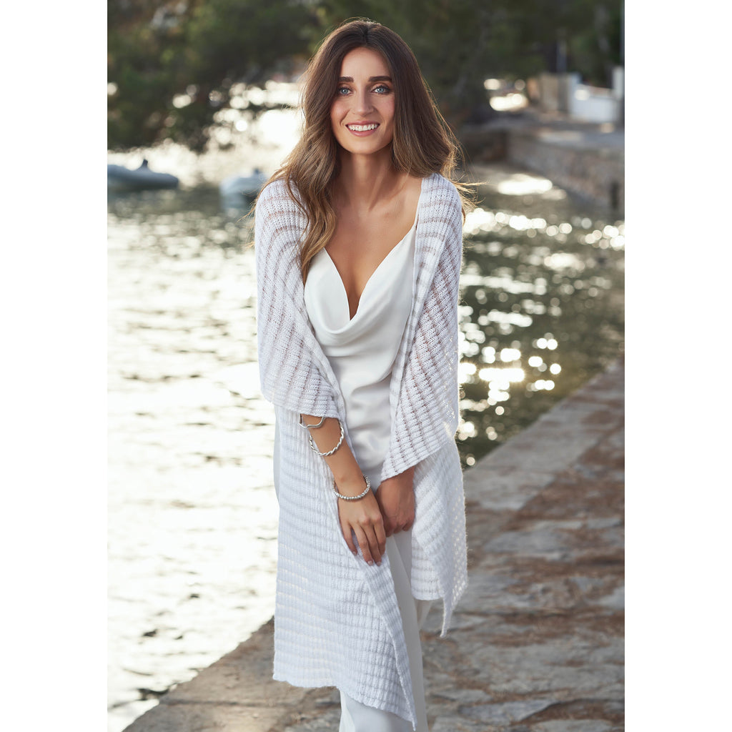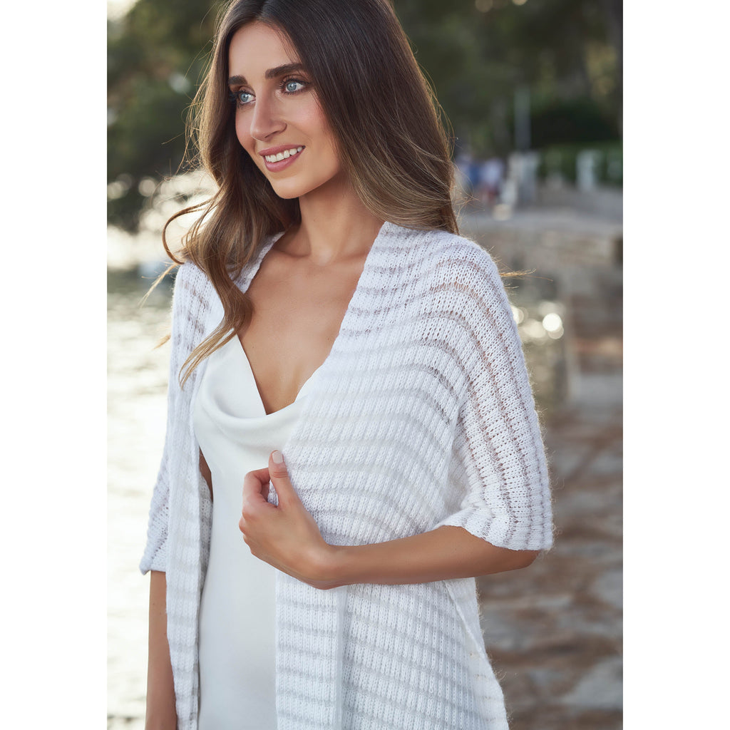 Kidsilk Haze adds a delicate air to this shawl by Martin Storey when striped with Summerlite 4ply. A drop stitch pattern keeps it light, despite its generous size.