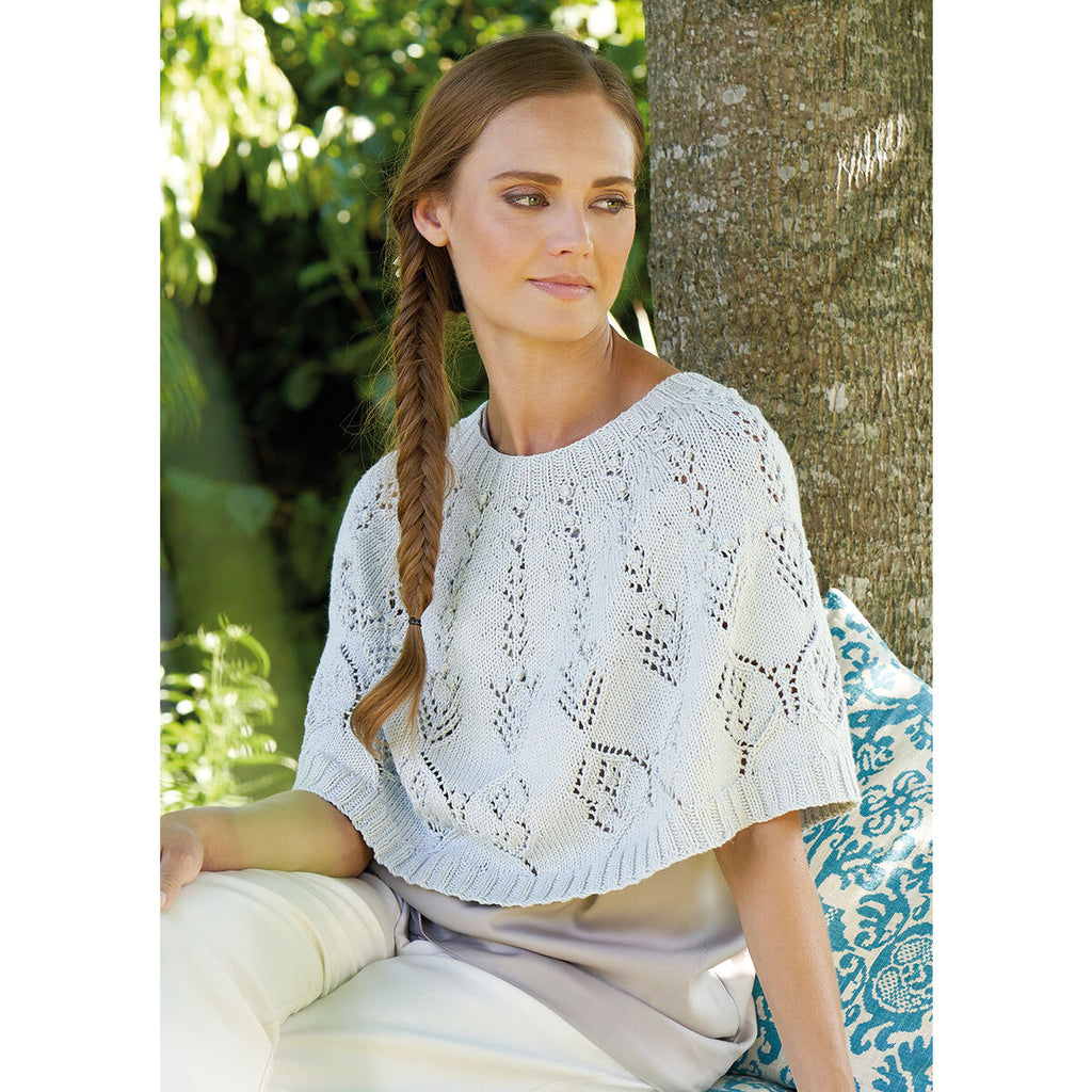 A poncho is a popular choice for cool summer evenings and this design by Martin Storey is just perfect for layering over your favourite summer outfit. Knitted in the round, from the bottom up, the lace pattern encompasses a pretty butterfly motif and is punctuated by simple little knots which add an extra dimension to this pretty accessory. It is knitted using a single shade of Summerlite DK.