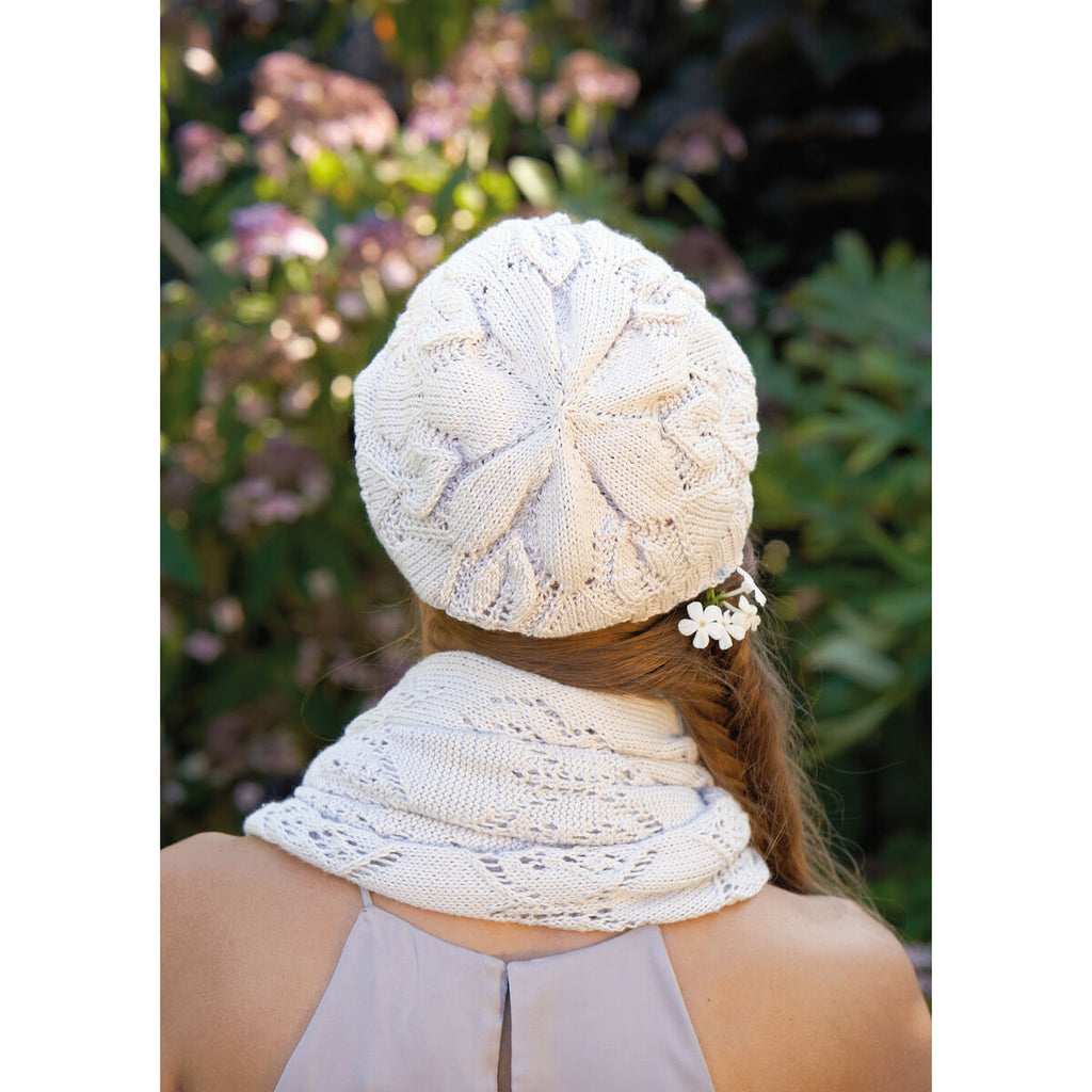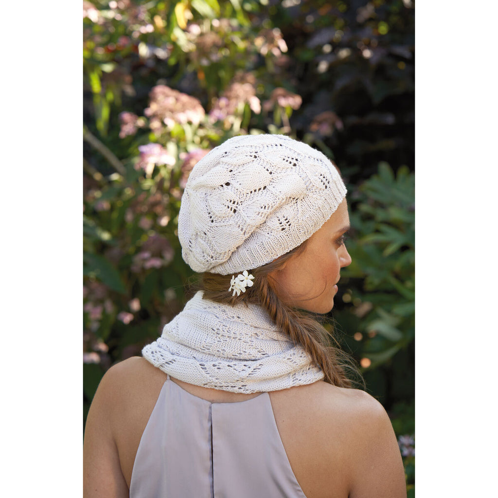 Designed by Martin Storey, this pretty hat features the same all-over lace design as Delphine poncho. Knitted using double-pointed needles and Summerlite 4ply, this cool, slouchy hat has a distinct relaxed feel, making it perfect for lazy summer days.