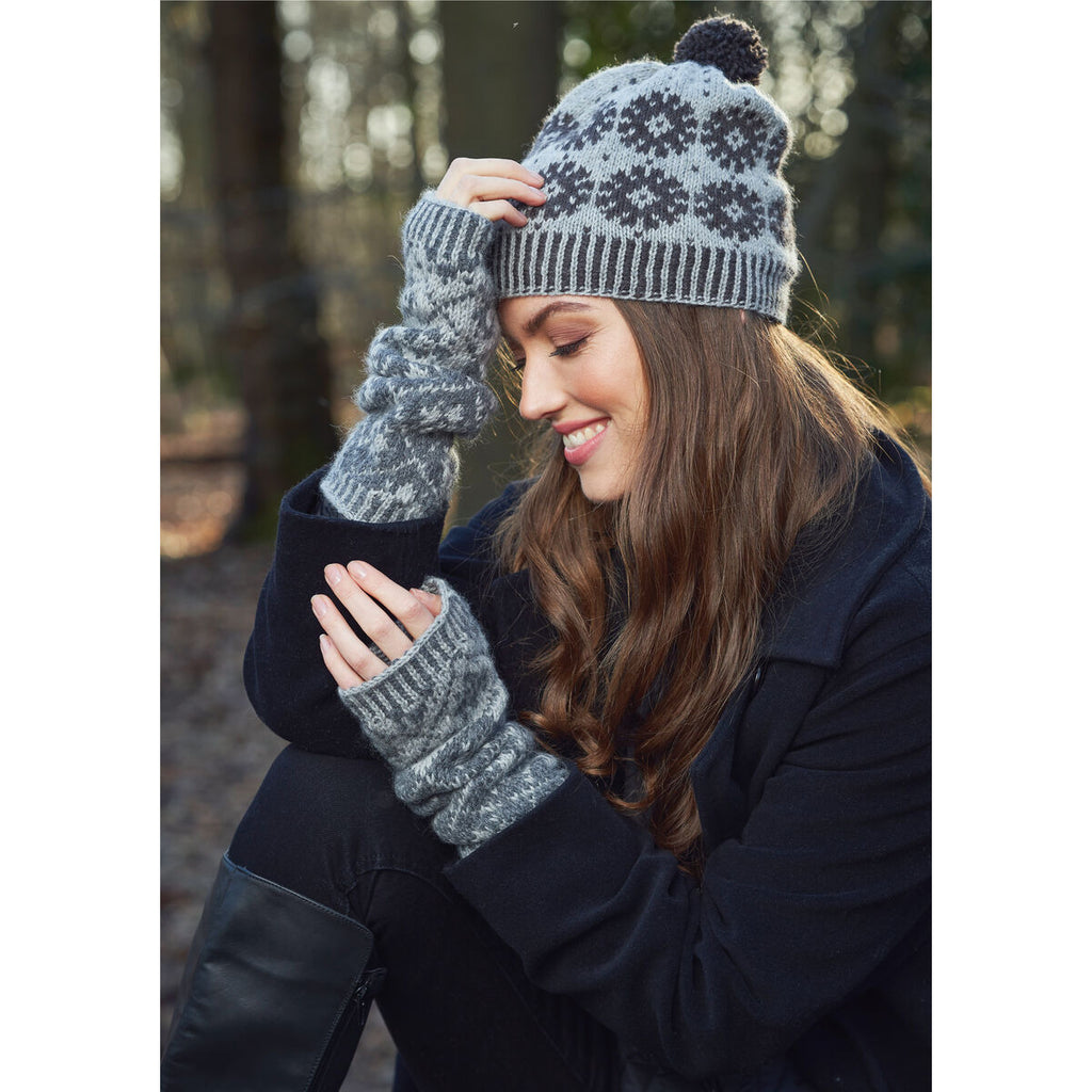 These super-soft Fair Isle arm warmers, designed in Alpaca Soft by Martin Storey will be a cosy addition to your Winter wardrobe. Two-colour ribs and a clever colour change up in the patterning make these a great project.