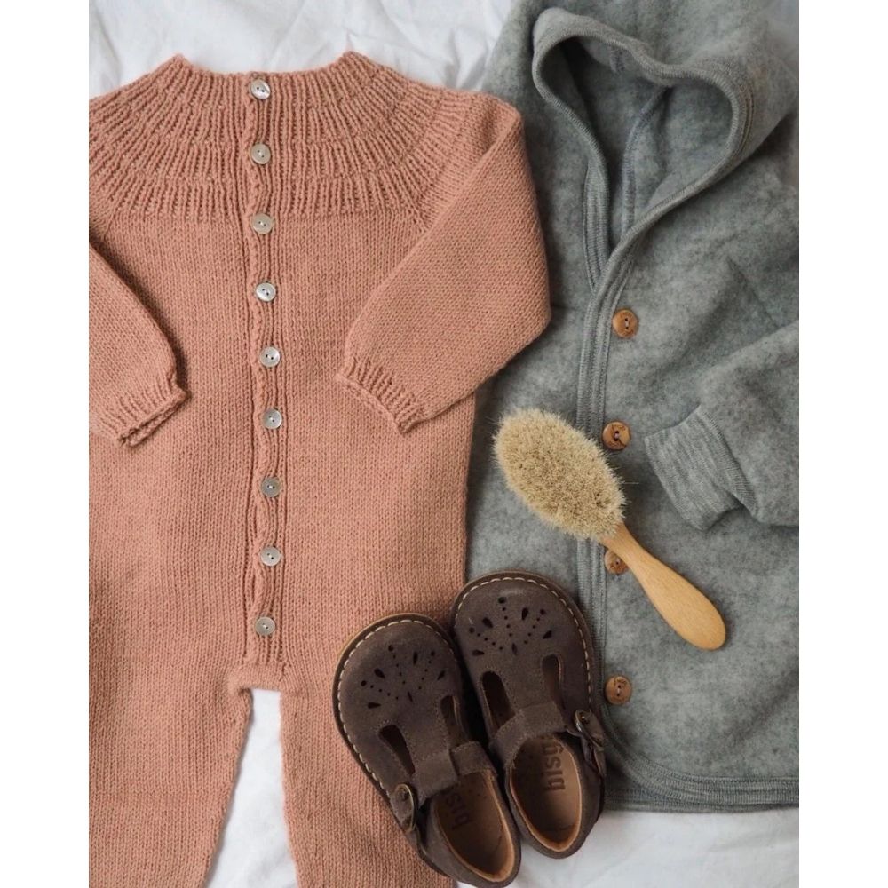 The Anker’s Onesie has a circular yoke with sections of rib shaped with increases, followed by a section of stockinette stitch shaped with classic raglan increases. The suit is worked from the top down.