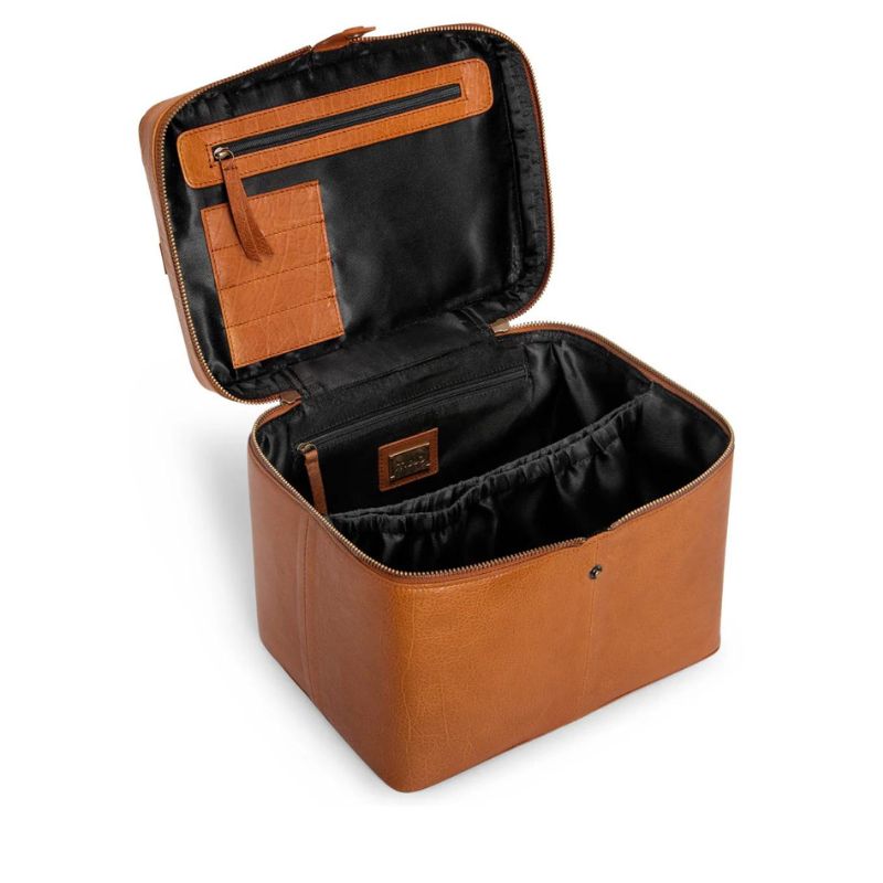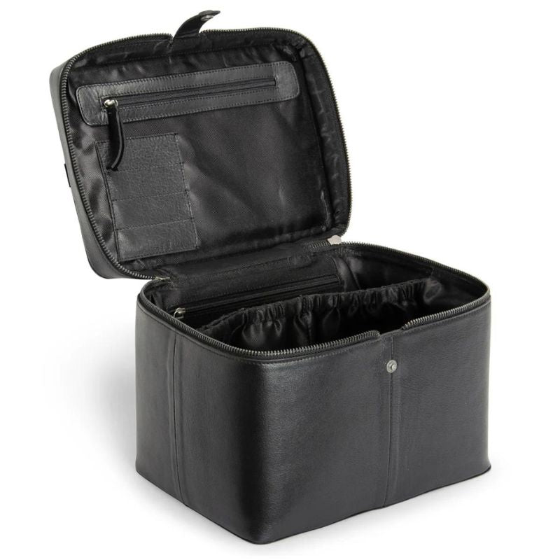 The bag is designed to easily store your items. The interior features practical pockets to keep all your products in place and standing upright. It also made as a hard-bag, and therefore the hard leathers case makes sure that fragile products are safely tucked away.