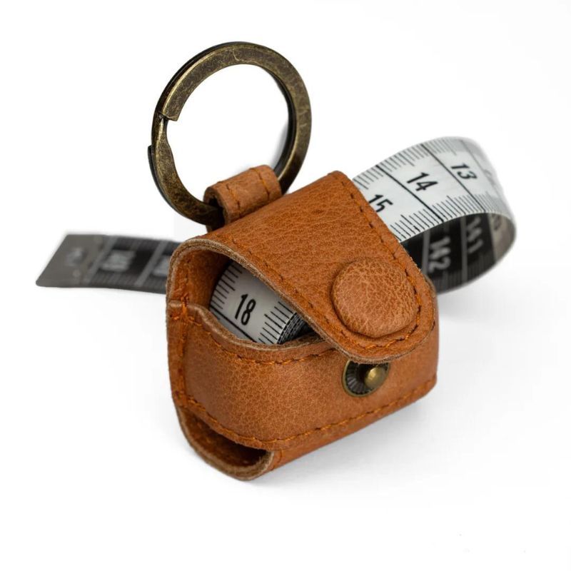 The handy measuring tape holder is perfect for anyone who doesn’t want to compromise on quality and craftsmanship. The holder is handcrafted in premium quality leather and executed to perfection. It has a button close and a keychain so it can be attached to your favourite project bag or anywhere you like it. This way you will always have your measuring tape close at hand.