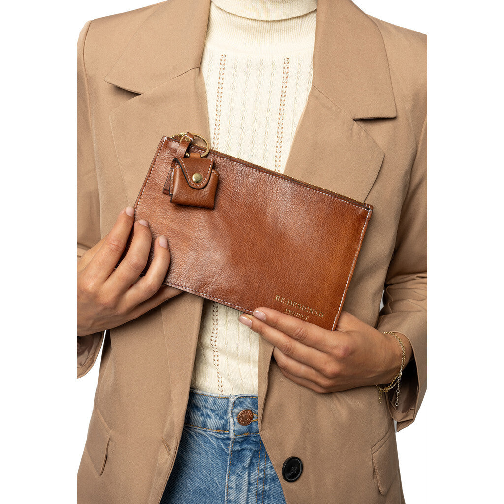 Crafted from their Urban quality leather, this clutch is made from naturally coloured cow leather, keeping the original grain intact. After it’s dyed, a light wax is applied by hand, giving it that soft, smooth feel that makes each bag unique.