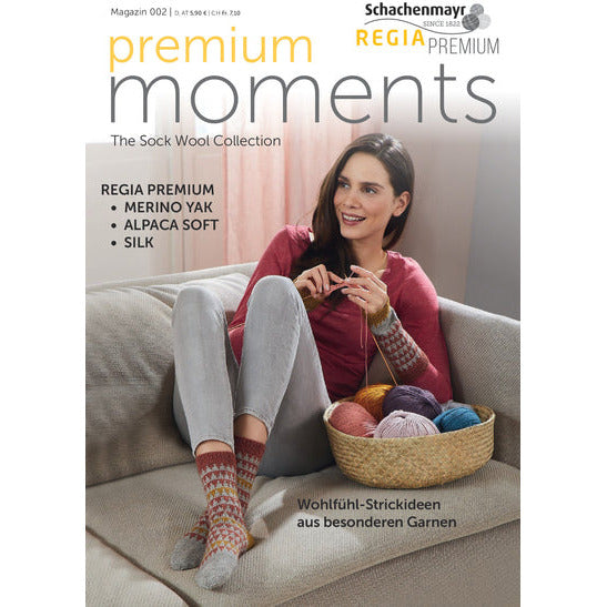 In the REGIA Magazine 002 - PREMIUM Moments you will find 20 feel-good knitting ideas made of very special yarns! The new Premium line from REGIA brings great feel-good yarns with a high wellness factor. Whether cuddly socks made of Alpaca Soft, fine triangular scarves made of Merino Yak or beautiful arm warmers in Jacquard pattern made of silk, here nothing to be desired. Stitch by stitch a very special knitting experience!