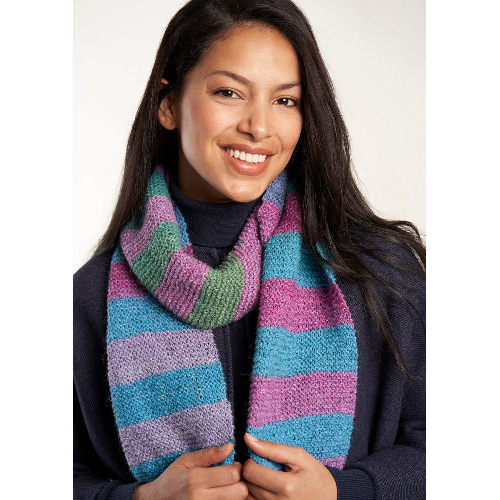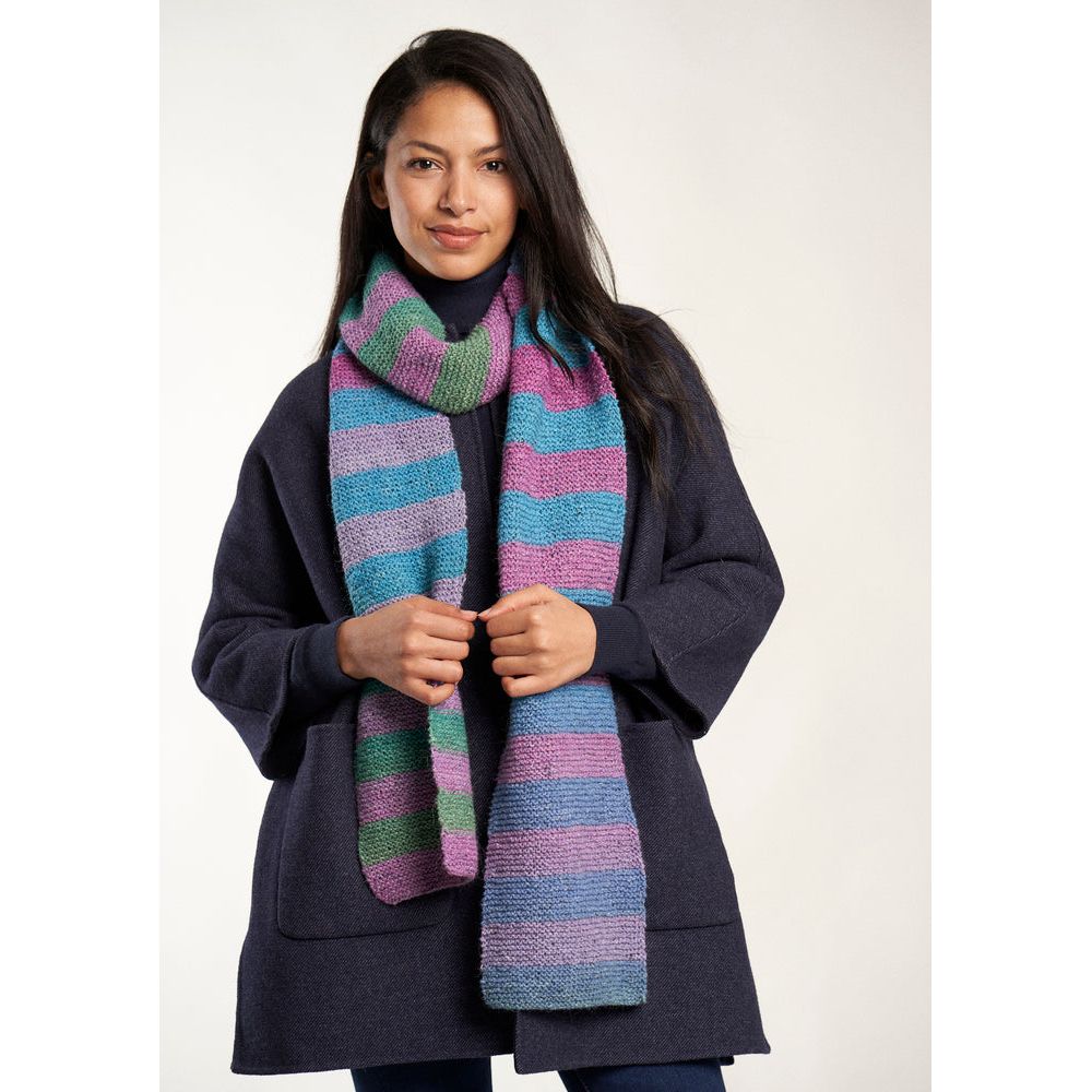 This simple garter stitch scarf from Kaffe Fassett is worked in wide stripes of two shades of Felted Tweed Colour. Enjoy this simple knit and let the yarn and colours do the hard work for you.