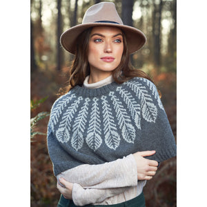 Folkloric feathers make an eye-catching statement around the neck of this short poncho designed by Martin Storey in Alpaca Soft. Decreases between the feathers create the subtle shaping. This kit contains all the yarn and is available with either the...