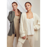 A collection of four womenswear designs by Quail Studio including two sweaters, a cardigan and cowl.