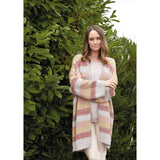 This elegant cardigan from Quail Studio, is knitted using Kidsilk Haze and Summerlite 4ply, held together throughout. An intarsia design of oversized houndstooth check, worked in mustard and cream tones, makes this garment really stand out. Knitted on a circular needle to accommodate the large number of stitches, the cardigan is neatly finished off with stocking stitch bands, folded over to make a smart double-layered edging.