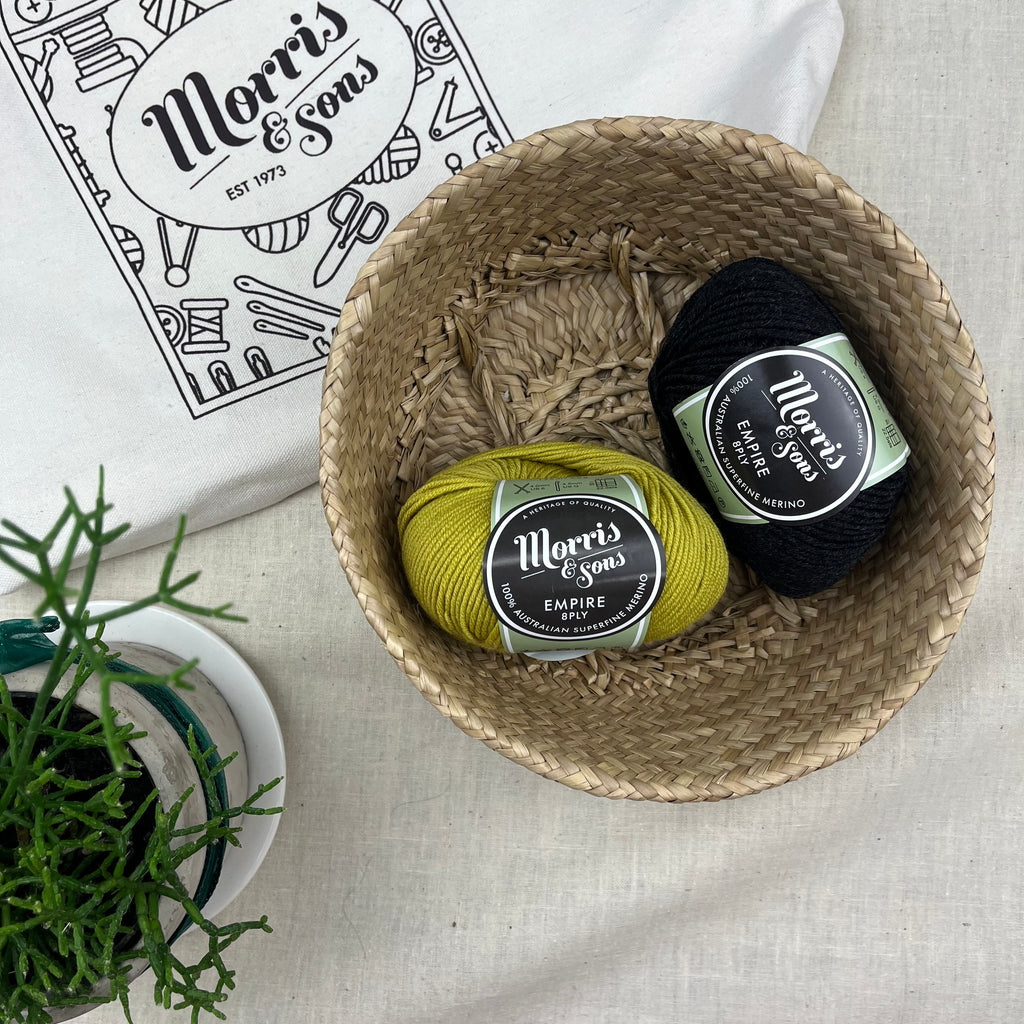 We have created 4 amazing bundles in our 100% Merino Wool Empire 8ply yarn and if you are keen to add tweedy flecks, we have you covered as well with our very light and really warm Rowan Felted Tweed DK. In fact, Susannah made her sample with this lovely yarn in colours 216 French Mustard and 211 Black.