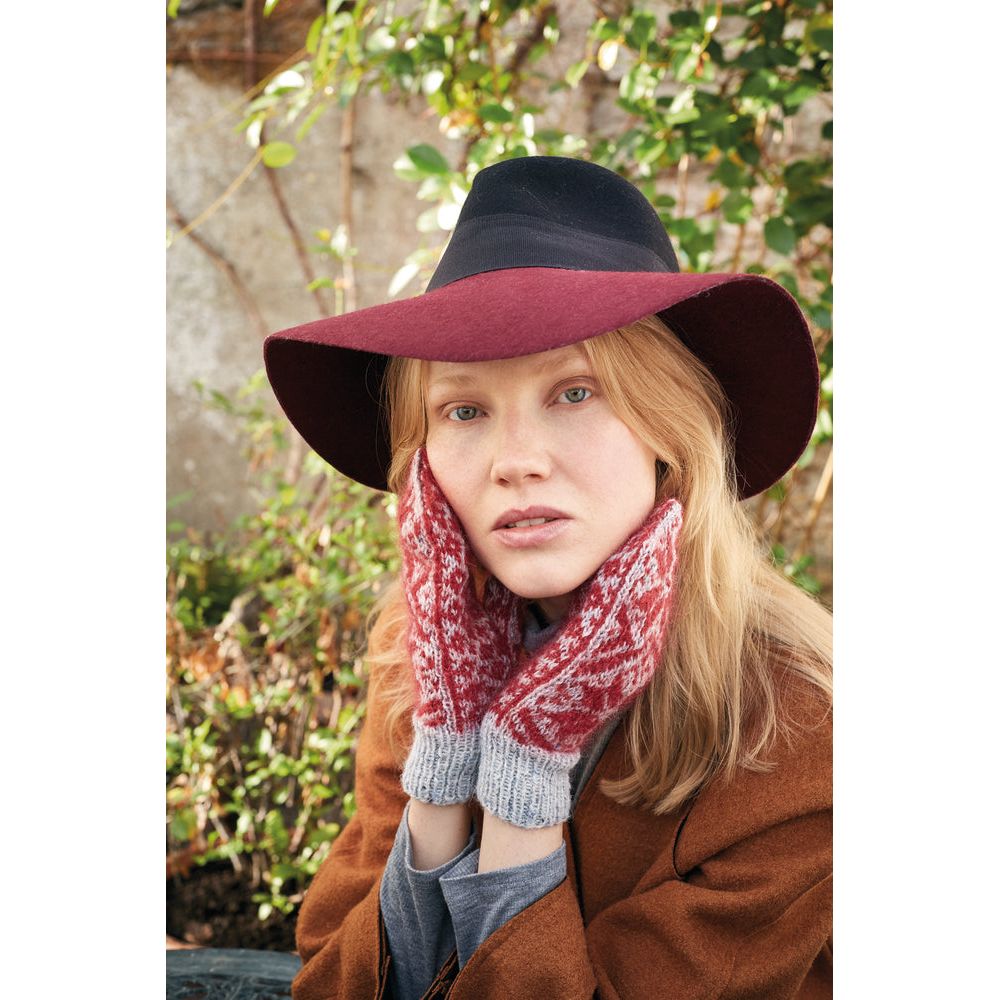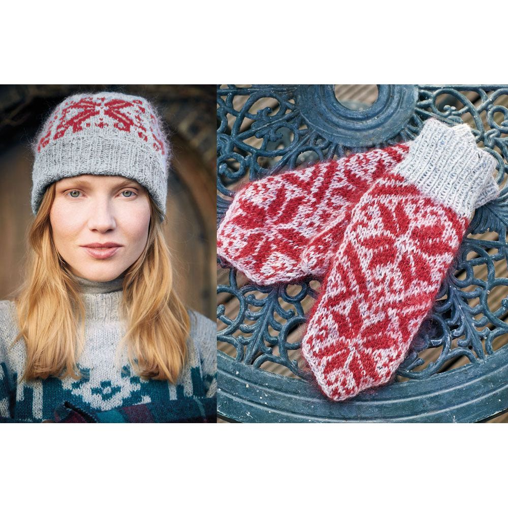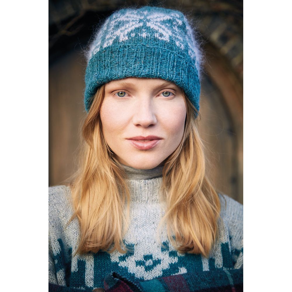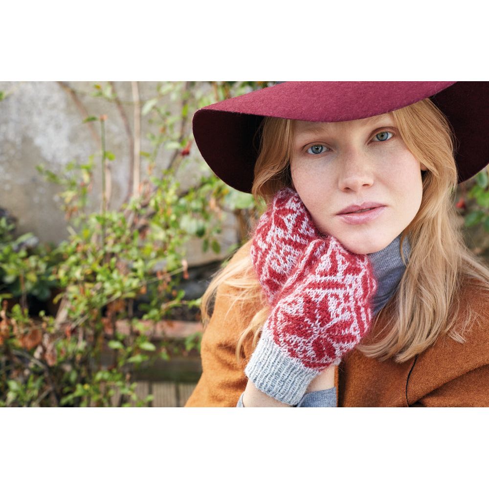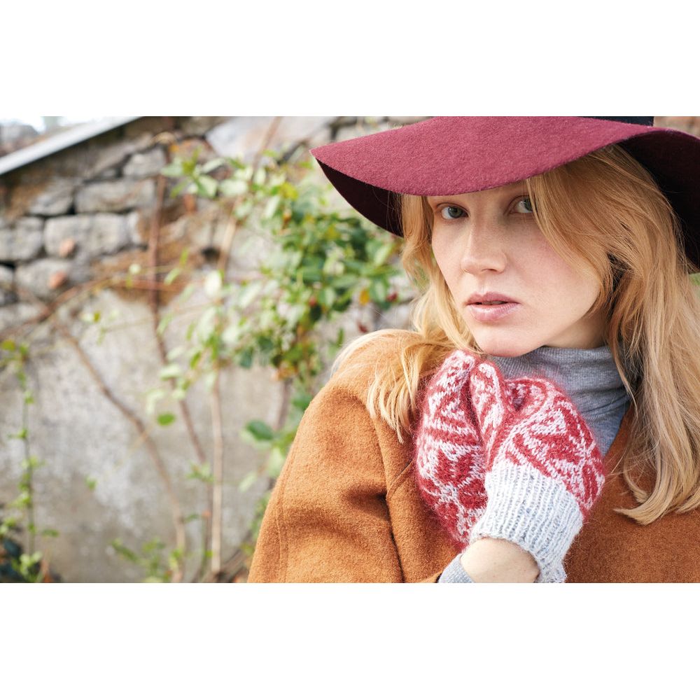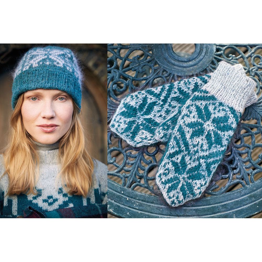 Pairing perfectly with the hat is our Eivor Mittens, embodying Norwegian traditional style infused with contemporary flair. Knitted with Felted Tweed and 2 strands of Kidsilk Haze for a vibrant touch, these mittens are as fashionable as they are functional, ensuring warmth and style during the winter season.