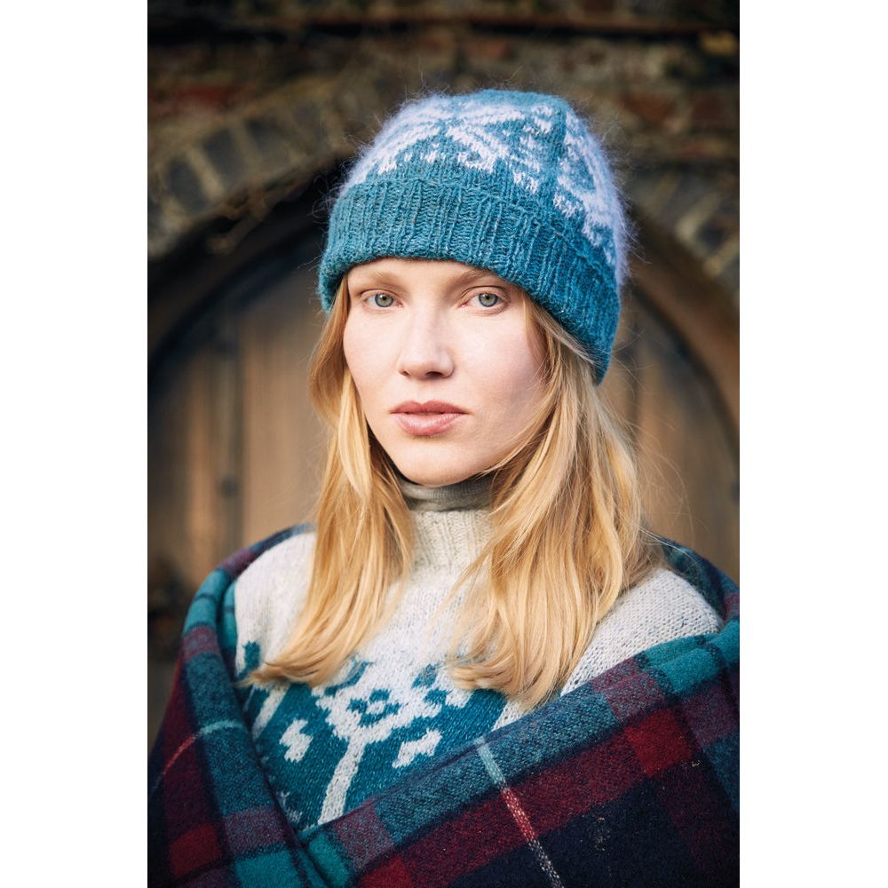 Crafted using Rowan's exquisite Felted Tweed and Kidsilk Haze yarns, the Solveig Hat showcases a stunning Fairisle pattern inspired by Nordic aesthetics. Intermediate knitters will delight in the intricate design and luxurious blend of wool, alpaca, viscose, mohair, and silk.