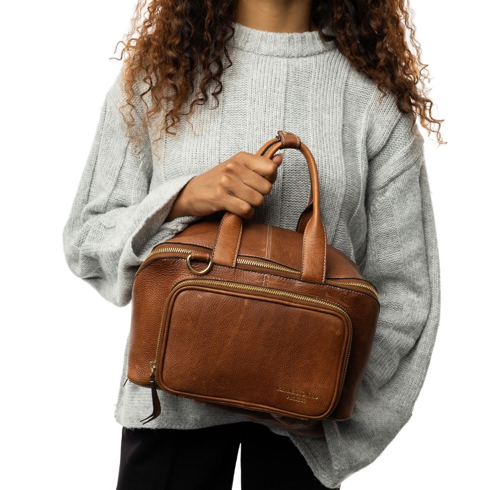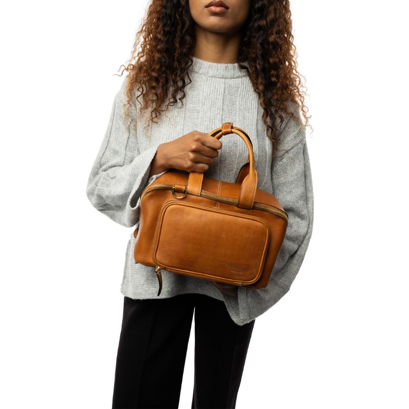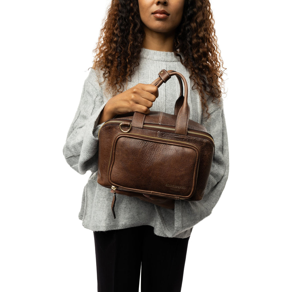 Made from Urban leather, a milled cowhide that retains its natural grain, each bag undergoes a unique dyeing process that enhances its smooth, soft texture. The light wax finish provides a refined look with distinct features that make each bag one-of-a-kind.